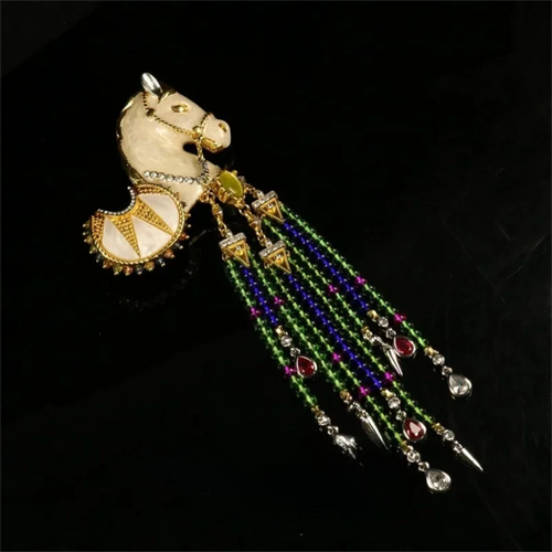 Exquisitely Enamel Horse Brooch, Handmade Pony Tassel Brooch Pin with Zirconia, Luxury Banquet & Evening Jewelry for Women
